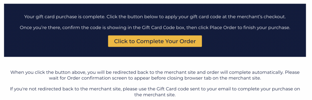 After checkout, you will receive an email containing your gift card code. This email acts as an additional confirmation of your completed transaction.